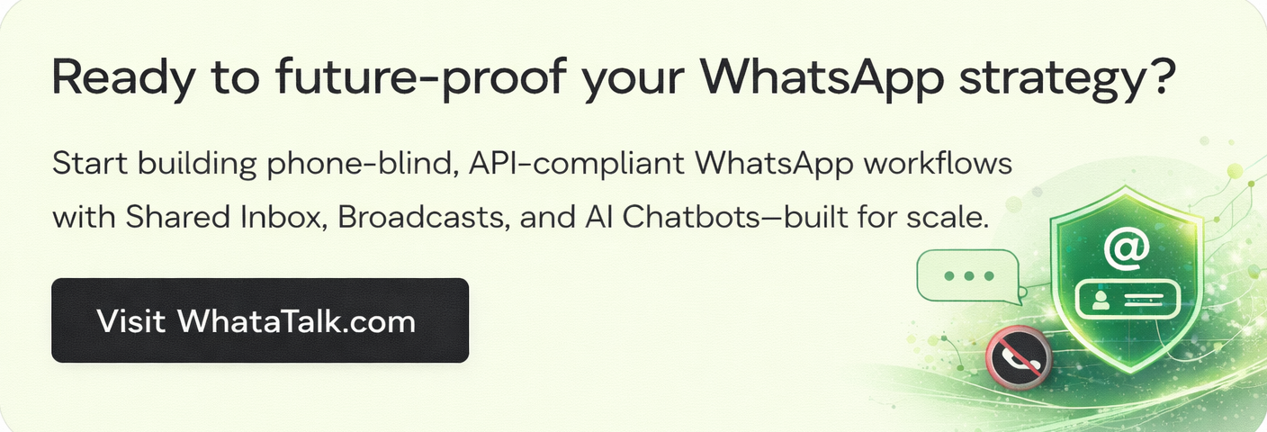 The Whatatalk Solution: Our Shared Inbox is built on the BSUID architecture. It captures the user’s unique ID immediately, allowing your team to create a contact profile, tag the lead (e.g., “Inbound – Pricing Inquiry”), and nurture the conversation—all without ever needing to ask for their phone number. You retain the history and the context, ensuring no lead is lost to privacy settings.